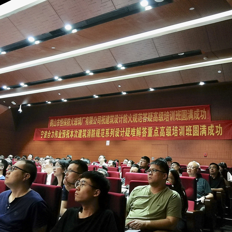 2019年4月和6月,鶴山市恒保防火玻璃廠有限公司與原公安消防局法制標(biāo)準(zhǔn)處處長(zhǎng)馬恒,在廣東廣州和浙江杭州等城市,共同舉辦了《全省建筑消防規(guī)范》疑難問題解析高級(jí)培訓(xùn)班,皆深受設(shè)計(jì)師們的歡迎。