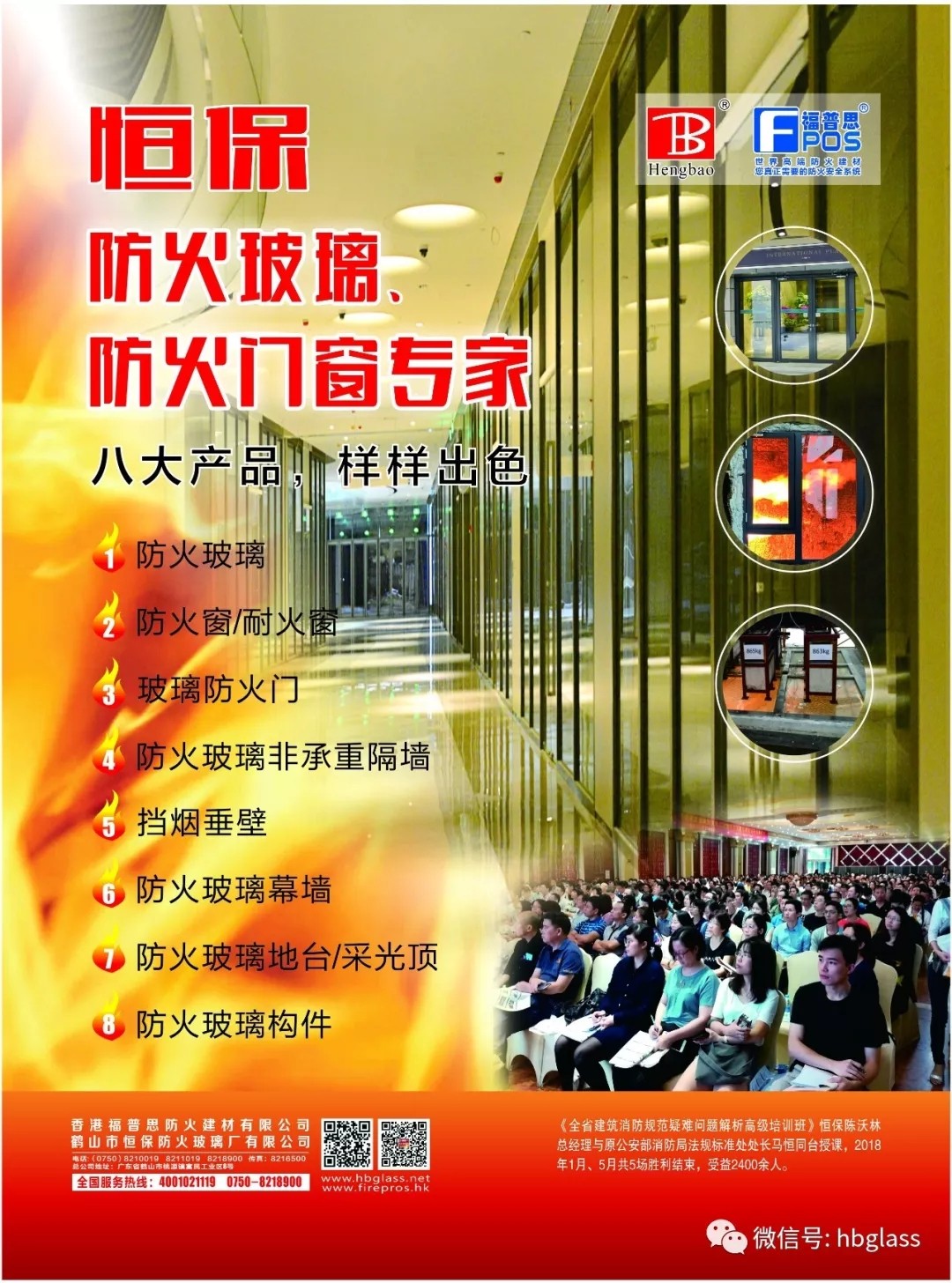 截止2019年9月中旬,恒保已獲得國家“消防類”主型產品認證證書43張,評定中心網上公告報告62份,四川中心公告26份,天津中心公告8份,廣東中心測試12份,英標、歐標、澳標、美標檢驗報告38份評估報告23份,耐火窗等其他性能測試報告20份,恒保公司共獲報告189份涵蓋0.5小時至4小時防火系列產品,并擁有防火玻璃與門窗類專利35項。