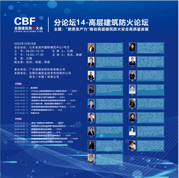 本次論壇的主題為:“新質(zhì)生產(chǎn)力”推動(dòng)高層建筑防火安全高質(zhì)量發(fā)展。本次論壇邀請(qǐng)17位嘉賓為高層建筑防火難題作技術(shù)報(bào)告。