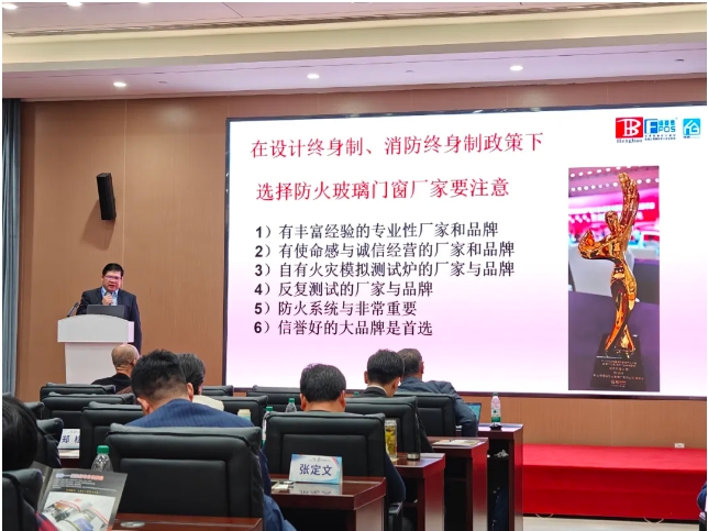 恒保董事長陳沃林先生在論壇上分享報(bào)告《高品質(zhì)防火玻璃及其在超高層建筑核心筒中的應(yīng)用》,從正確認(rèn)識(shí)防火玻璃、什么是高品質(zhì)防火玻璃、高層建筑消防當(dāng)前趨勢(shì)以及高品質(zhì)防火玻璃系統(tǒng)在高層建筑中的應(yīng)用四個(gè)方面介紹防火玻璃系統(tǒng)產(chǎn)品在高層建筑消防的作用,并分享如何正確選擇防火玻璃系統(tǒng)產(chǎn)品的經(jīng)驗(yàn),讓高層建筑更加美觀實(shí)用的同時(shí),避免出現(xiàn)火災(zāi)時(shí)“防火玻璃”不防火的現(xiàn)象。陳沃林先生呼吁大家共同抵制假冒偽劣防火玻璃產(chǎn)品,對(duì)建筑消防安全負(fù)責(zé)、對(duì)生命安全負(fù)責(zé)。